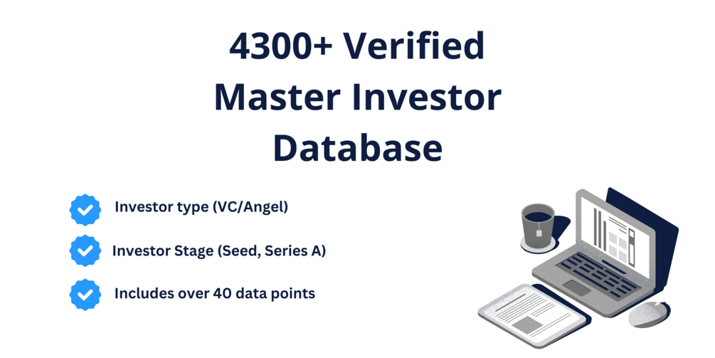- Includes over 4300+ focused Investor (Company level) along with detailed information on stage invested in, type of investor, etc.